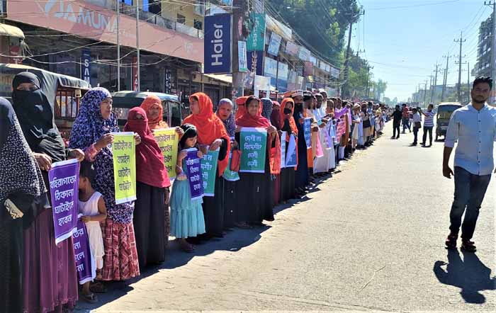 এদিন সকাল ১১ টা থেকে দুপুর সাড়ে ১২টা পর্যন্ত আঞ্চলিক মহাসড়কে ঘাটাইল উপজেলার হামিদপুর, কদমতলী, মোগলপাড়া, কালিদাসপাড়া, হরিপুর, গুণগ্রাম, ঘাটাইল, বানিয়াপাড়া, ক্যান্টনমেন্ট(পোড়াবাড়ি), পাকুটিয়া ও দেউলাবাড়ি বাসস্ট্যান্ডে ‘লালকার্ড’ হাতে নিয়ে মানববন্ধনে অংশ নিয়ে নেতাকর্মীরা ‘বয়কট বয়কট, বহিরাগত বয়কট’, ‘বহিরাগতের ঠিকানা, ঘাটাইলে হবেনা’, ঘাটাইলের মাটি, আজাদ ভাইয়ের ঘাটি’ ইত্যাদি স্লোগান দেয়।