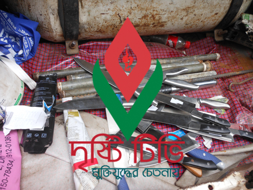 এ সময় টাঙ্গাইল রাইফেল ক্লাবের সামনে রাখা একটি প্রাইভেট কার(ঢাকা মেট্রা-গ ১৪-১০৮৫) থেকে কয়েক ডজন ধারালো অস্ত্র, চাপাতি চাকু, রড, হাতুড়ি, পেথিডিন ইনজেকশন ও সিরিঞ্জ উদ্ধার ও গাড়িটি জব্ধ করে পুলিশ।