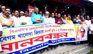 খালেদা জিয়ার মুক্তির দাবিতে জেলা বিএনপির মানববন্ধন