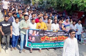 টাঙ্গাইলে বিএনপির অগ্নিসন্ত্রাস-নৈরাজ্যের বিরুদ্ধে ছাত্রলীগের প্রতিবাদ মিছিল