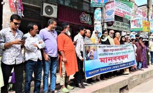 টাঙ্গাইলে ব্যবসায়ী নেতার উপর হামলার প্রতিবাদে মানববন্ধন