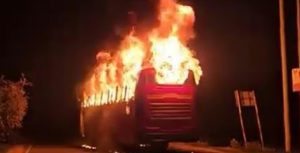 মধুপুরে মোটরসাইকেল চালককে চাপা দেওয়ায় বাসে আগুন