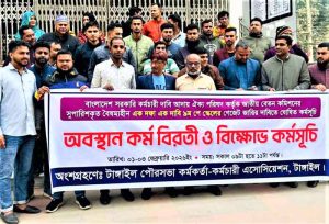 পৌর কর্মকর্তা-কর্মচারীদের গ্রেড উন্নীতের দাবিতে বিক্ষোভ কর্মসূচি