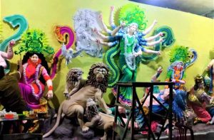 প্রতীমায় রঙ-তুলির সাজ-সজ্জায় ব্যস্ত শিল্পীরা